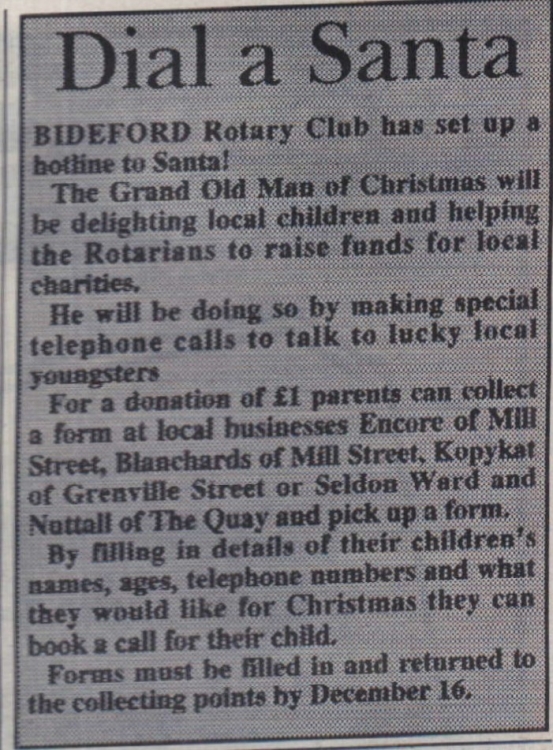 Bideford Rotary Club has set up a hotline to Santa!