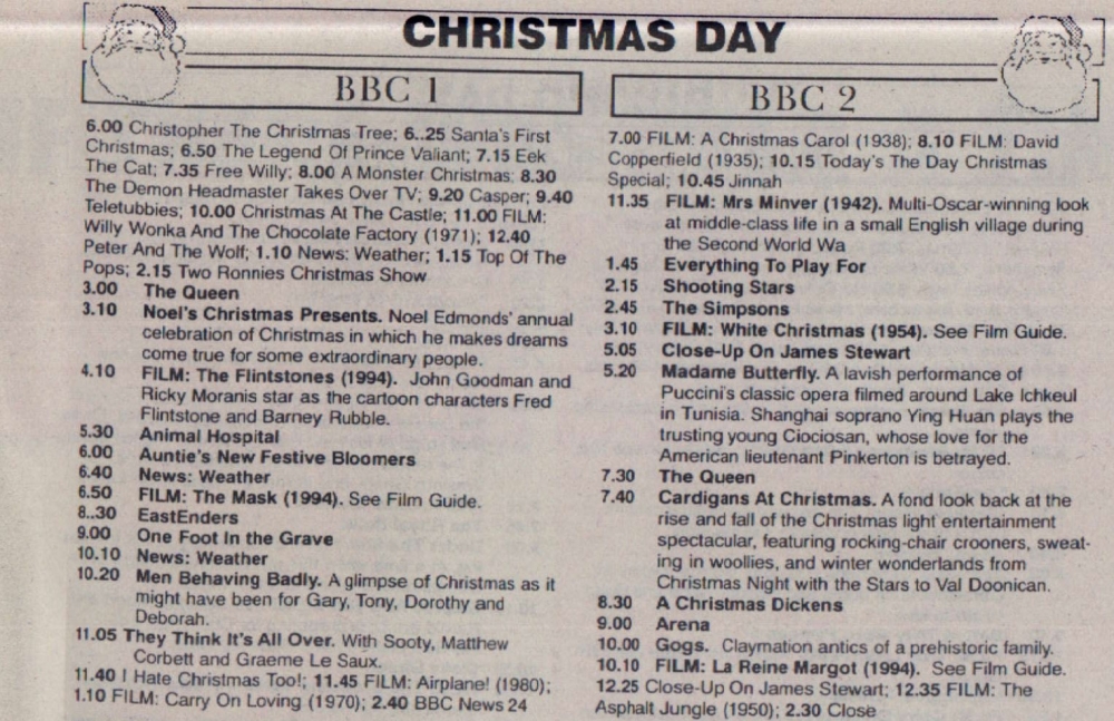 Christmas Day television viewing on BBC1 and BBC2. On Westcountry, the films were The Muppet Christmas Carol (1992) and Home Alone 2: Lost in New York (1992).