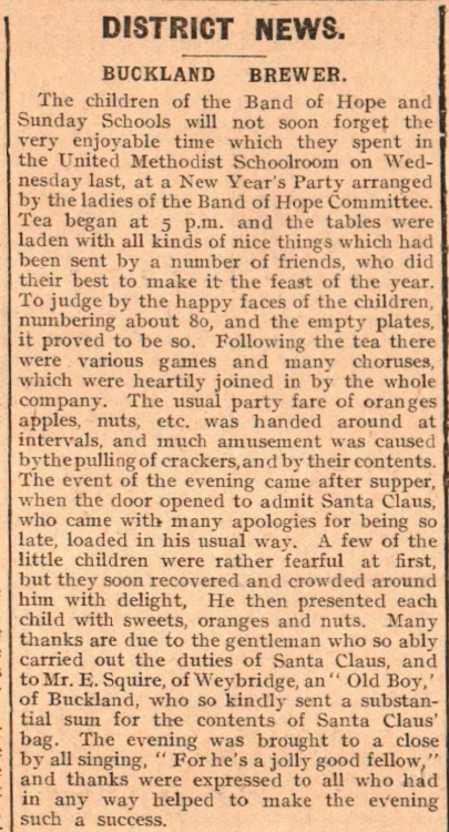 At Shebbear, the Vicar has distributed the boot tickets and book prizes from the Fortescue Charity at Christmas to children attending the Council School, also the Harrington Charity for deserving poor.