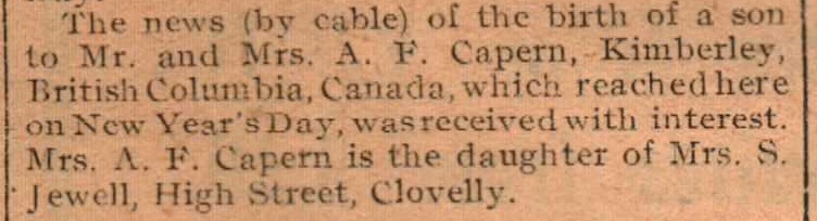 Mrs S Jewell has a grandson, born to Mr and Mrs A F Capern.