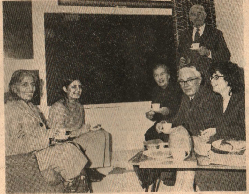 A welcoming cup of tea greets the first of two Ugandan Asian families who are being found homes by Northam Urban Council. The family travelled from Honiton camp to their future home, no. 21 The Mount, Appledore. Mrs Parkash Kaur Rajput and her daughter, Balbir, are seen with Major J P Foulds, of Georgeham, a long standing family friend who brought them in in car, from the camp. Also in the picture are Mrs T P Keene, Mr J A Wright and Miss G Yeo.