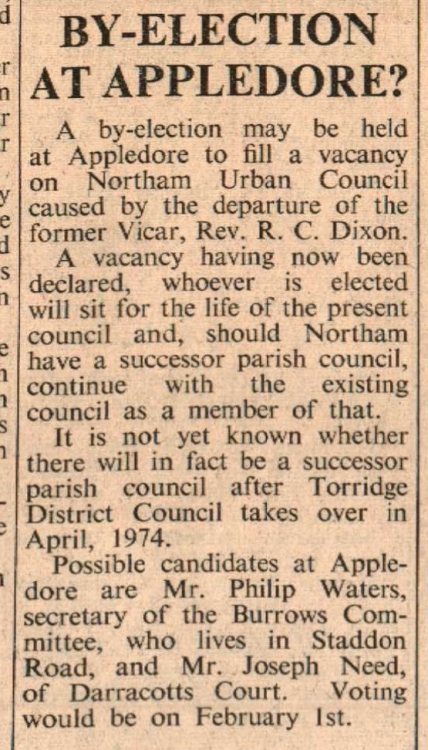 Draft wardings for the first election of the Torridge District Council made by the Home Office followed exactly the recommendations of the steering committee as approved by the constituent councils, the Town Clerk, Mr L B Galliford, told Bideford Town Council. They give a council of 36 – nine representatives for Bideford, three for Torrington borough, seven for Northam urban district, four for Bideford rural council, six for Torrington rural district and seven for Holsworthy rural district. The Home Office, said Mr Galliford, had told them that Bideford borough would be designated by order as the authority to appoint the returning officer and would have to pay his expenses for the first election.