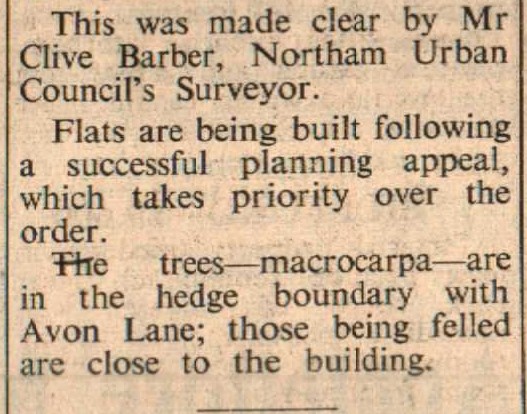 Trees at The Links, Westward Ho! although the subject of a preservation order are having to be sacrificed to development. But all that are felled are to be replaced.
