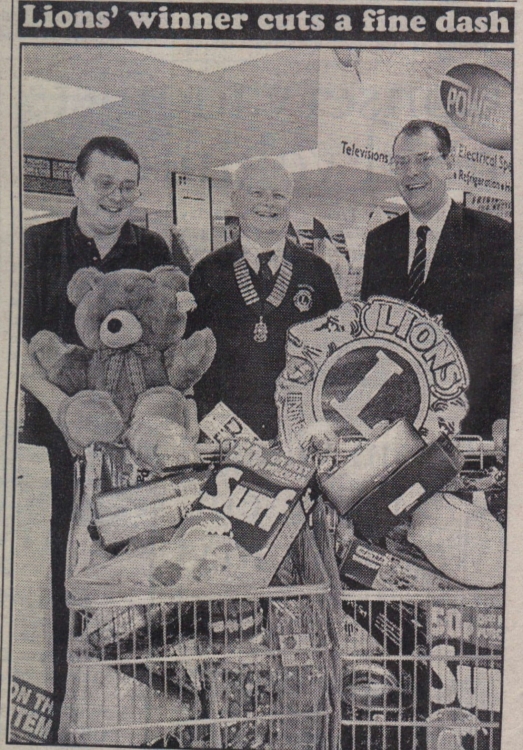 There was no shortage of festive fare in the Varney household at Bideford after a two-minute dash around Normans' supermarket. Dashing dad Andy Varney, of Moreton Park Road, bought the winning ticket in the fund raising event organised by Bideford Lions' Club. In his early morning sprint around the shopping aisles he scooped £260 worth of groceries. And the Lions' Club raised around £500 for local charities. The picture shows Andy with Bideford Lions' Club president Terry Triggs and Normans' store manager Roy Dymond.