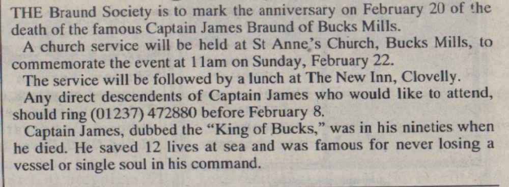 Marking the anniversary of the death of Captain James Braund of Bucks Mills.