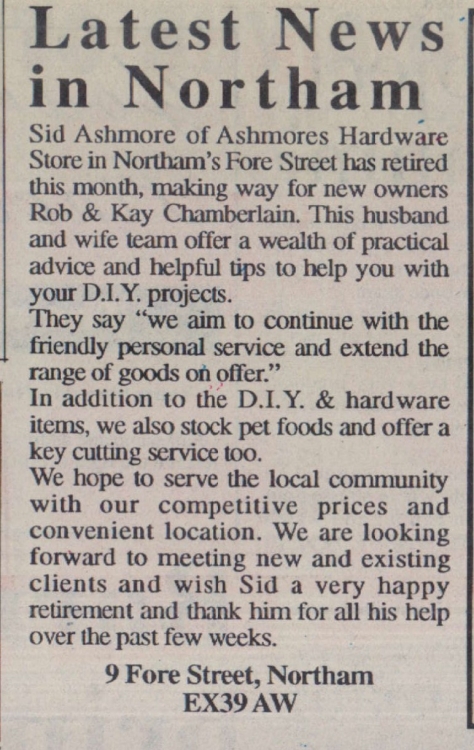 To help you plan your year, the supplement to the 2 January Gazette has an Almanack giving postal information, lists of public offices and bus details. It’s not good enough quality to reproduce here but if you like this sort of thing pop into the Archive sometime and have a look. The first paper of the year also carries a “Fifty years ago” item - in 1873 Mr W I Vellacott was Mayor of Bideford, the constables appointed by the Watch Committee were W Fisher (Superintendent) and J Warren (Constable) and the price of coal was 1s 1d per hundredweight.