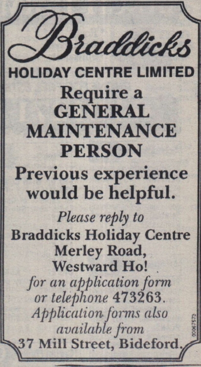 Braddicks Holiday Centre Ltd in Westward Ho! need a general maintenance man.