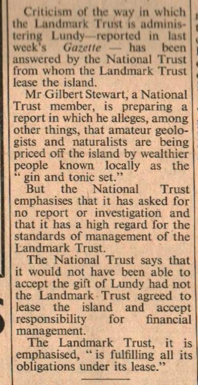 National Trust’s reply to criticism of the way in which the Landmark Trust administers Lundy.