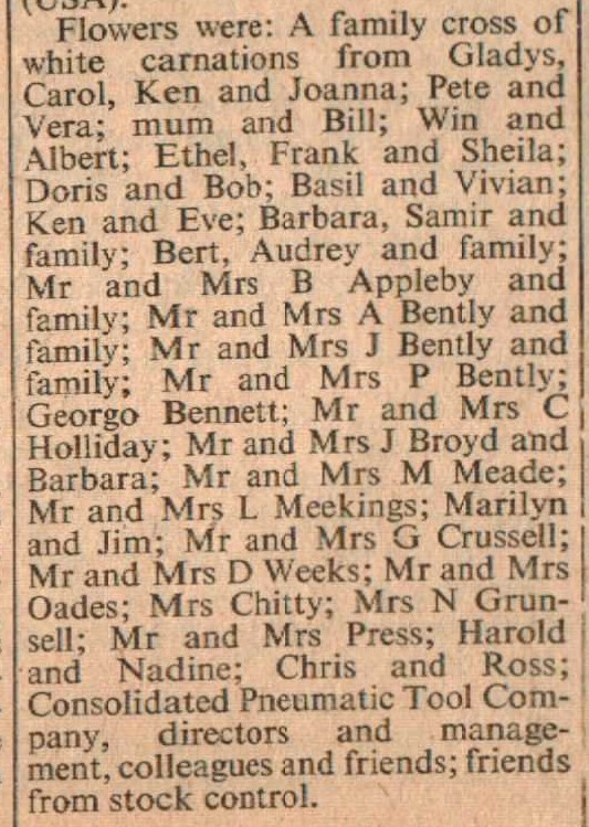 The death has occurred in London of Mr Lester Burridge, an Old Boy of Bideford Grammar School who, until about 20 years ago, spent the whole of his life in Torrington. At one time he played football for Torrington. Aged 52, he was stock manager of Consolidated Pneumatic Tool Co. He returned to this area where he had relatives and many friends several times a year. Flowers were from..