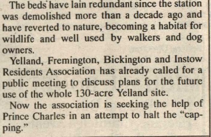 Residents living near the former Yelland power station site are trying to enlist the help of the Prince of Wales in their fight to preserve a wildlife area there. Planning permission has been given for the covering of soil of old ash beds created during the operation of the power station and which are believed to contain asbestos waste.