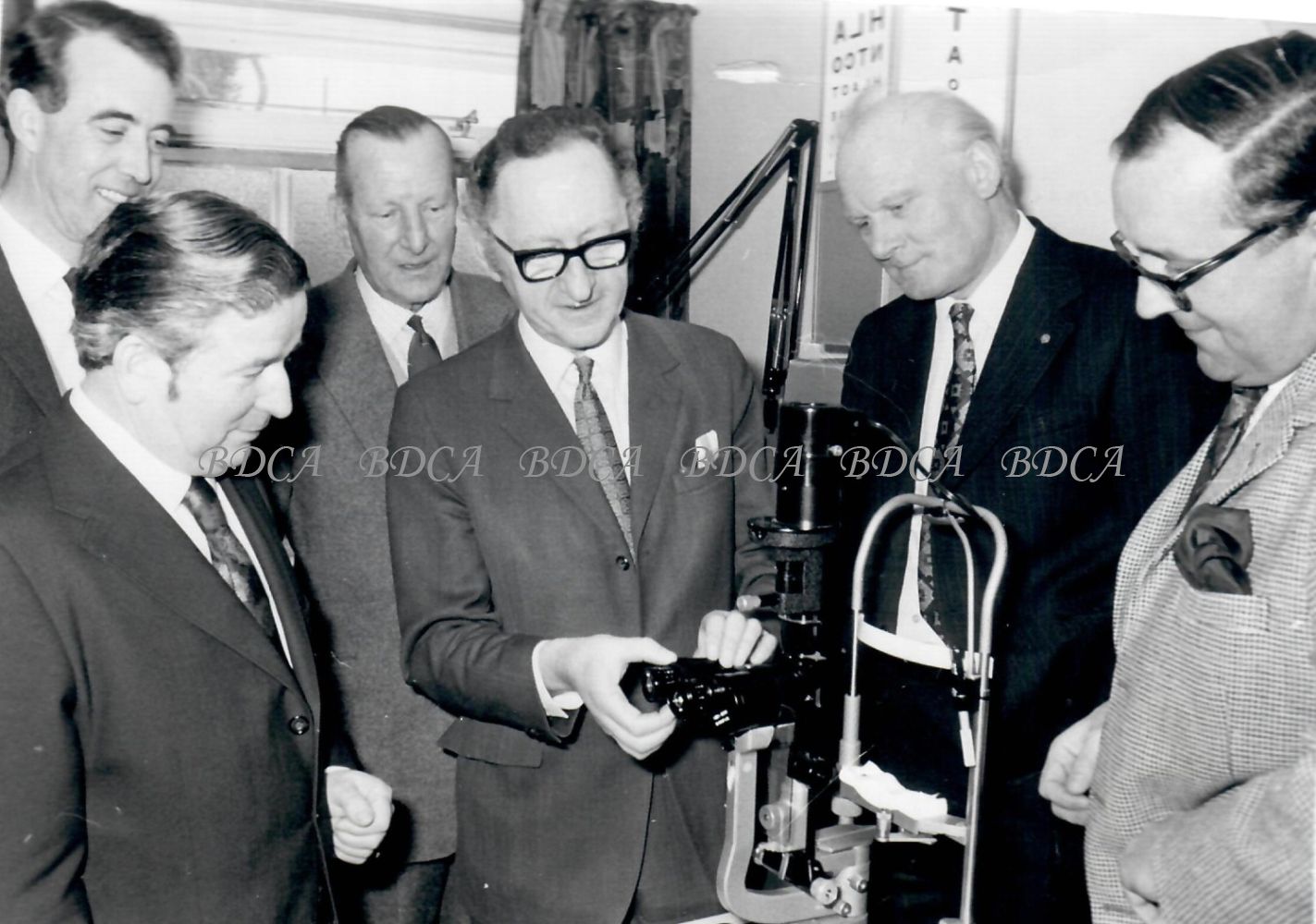 Dr Roger Hunt, Joe Ball, Dr Carey, D Cowling, DR Lyons, Dr AJW Jarvis - Presentation of eye equipment from Dock