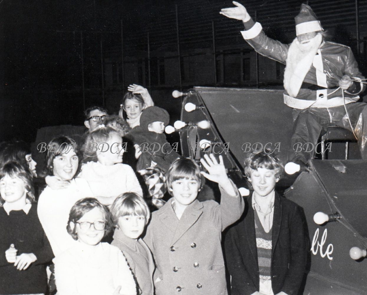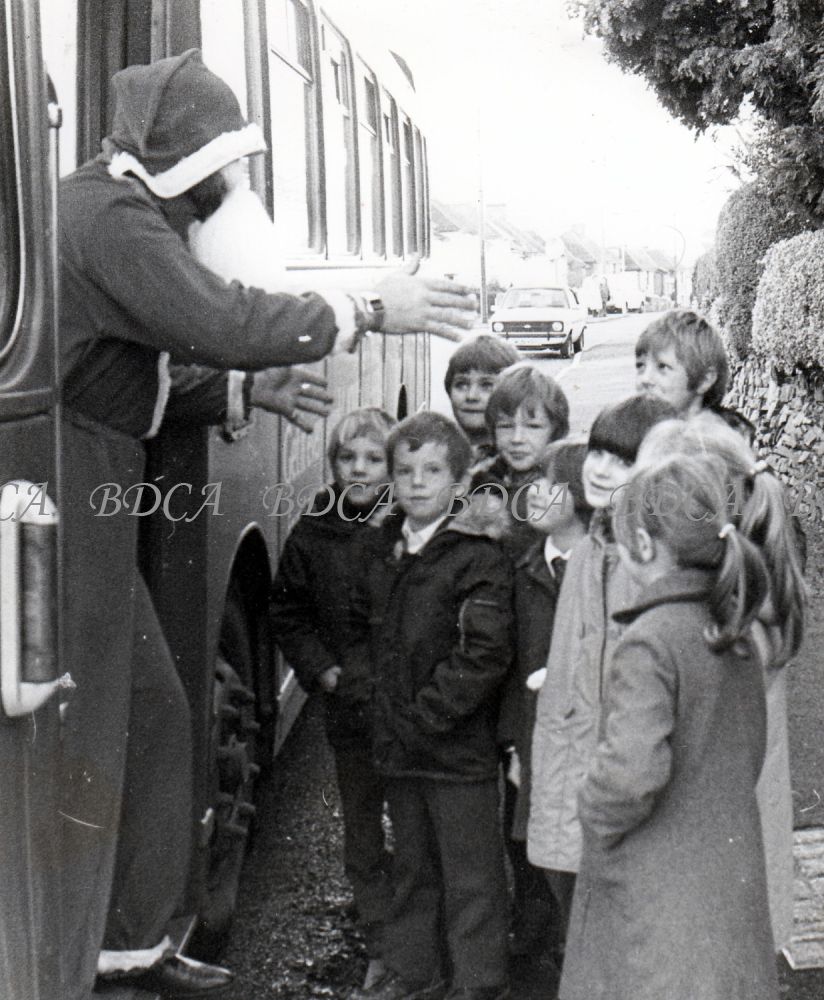 Father Christmas on bus with children