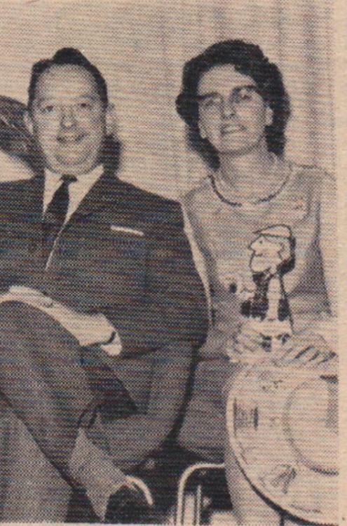 Mr W Grant, and his wife, photographed at a presentation dinner in London at which it was announced that Mr Grant was one of the 10 winners of an eight-day holiday by jet to Majorca in a competition sponsored by Nibco Ltd to promote their new all-copper range of capillary fittings.